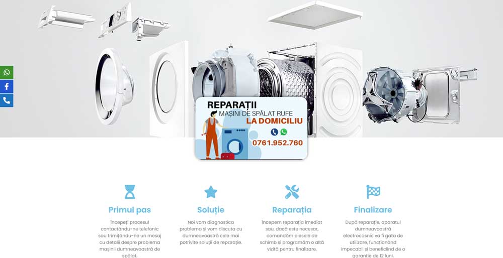 Un site funcțional și eficient, care transmite profesionalism și încredere. ReparatiiMasiniSpalat.eu este un exemplu de proiect în care utilitatea și simplitatea se îmbină cu un design curat, orientat spre conversie.